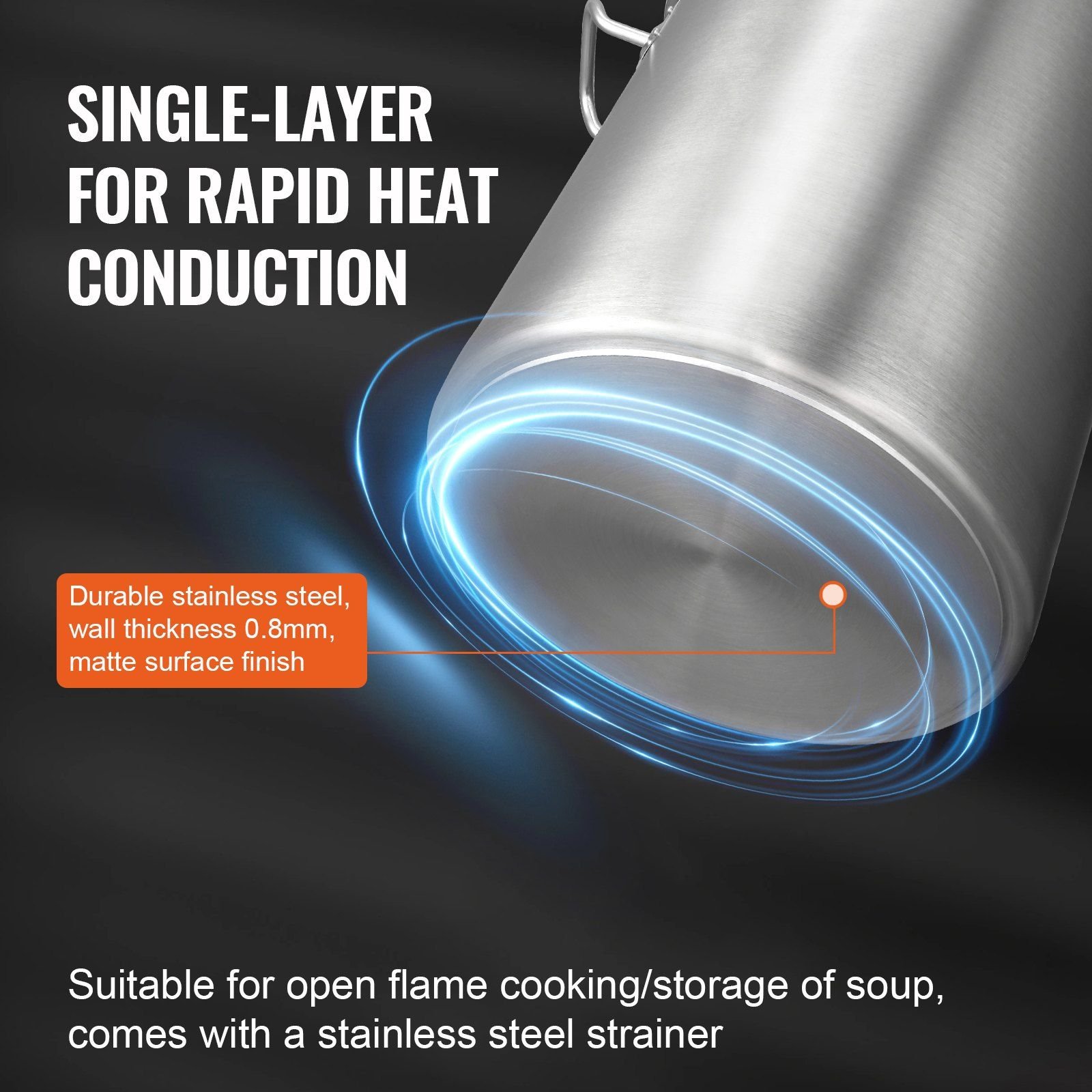 3.Single-layer for Quick Heat Conduction: Suitable for open flame cooking or storing soup, comes with a stainless steel strainer. The kitchen stockpot's base incorporates magnetic and thermally conductive aluminum, combined with the excellent corrosion and heat resistance of stainless steel. This makes the pasta pot suitable for induction stoves while enhancing cooking efficiency and experience.