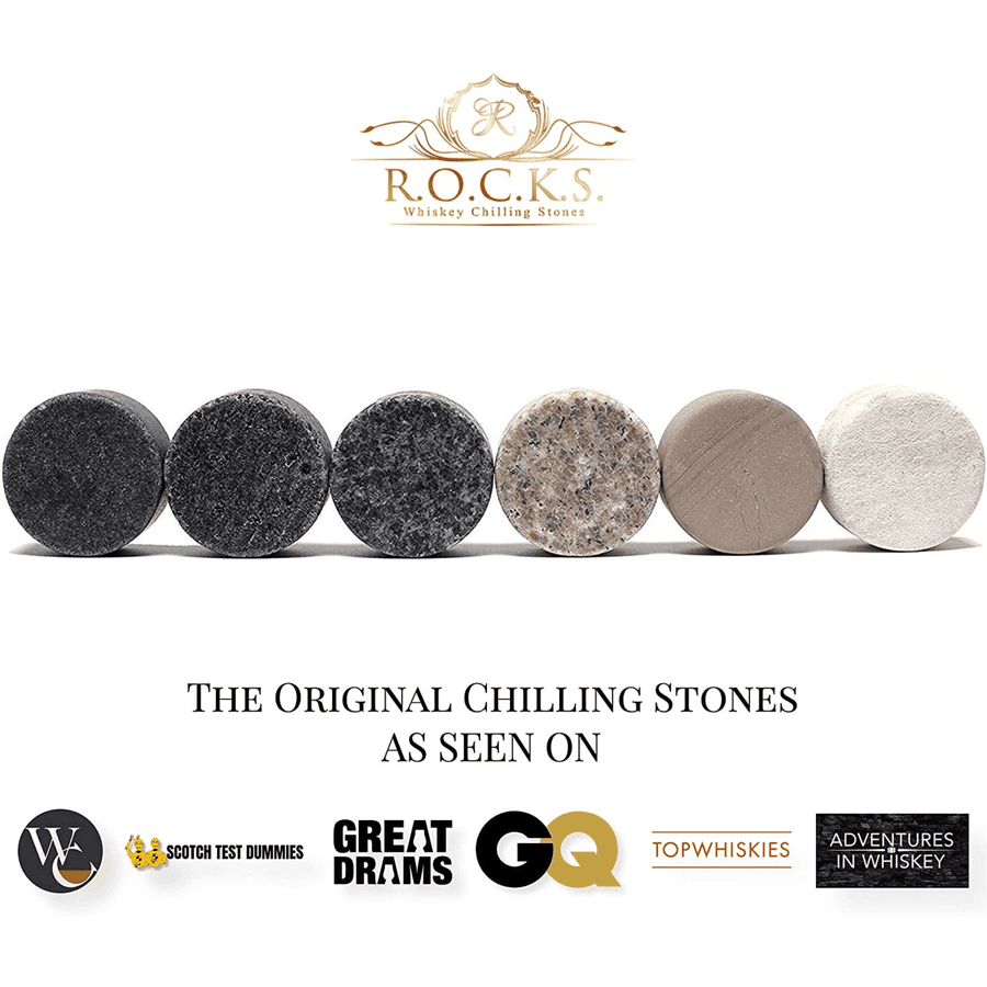 Whiskey Chilling Stones Kentucky Bourbon Barrel Aged Coffee Gift set 6 handcrafted premium granite round rocks-hardwood storage tray a gourmet tasting