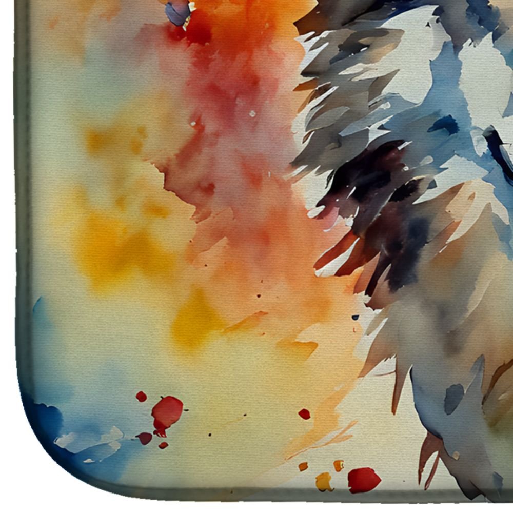 Dish Drying Mat featuring breed specific Wolves artwork. Say goodbye to messy countertops and soggy dish towels with our innovative dish drying mat. Our high-quality dish drying pad is designed to keep your countertops dry while offering a stylish and efficient solution. Whether you're air drying dishes, glasses, stemware, silverware, pots, pans, bottles, or even fruits and vegetables, our dish mat is the perfect choice. The 14 inches x 22 inches size fits most counters and dish drying racks, and the non-slip design ensures stability. Made with water-absorbent polyester and a polyurethane foam insert, our dish drying mat is not only functional but also durable. It's machine washable and printed in the USA for long-lasting use. The beautiful artwork adds flair to your kitchen decor, making it a perfect housewarming gift or present for any occasion. Upgrade your kitchen experience with our absorbent and versatile dish drying mat.
